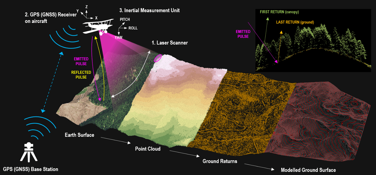 Figure 2. Concept of LiDAR theory and how the ground surface is modelled.