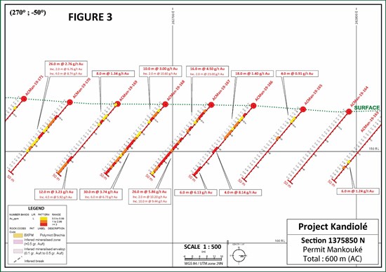 In addition, the recent very impressive AC drilling assay results at the southern end of the Mankouke permit, as shown on both the plan in Figure 1 and on the section in Figure 3, indicates a 7-kilometer-long exploration corridor at Mankouke. This area will be a priority drilling target for the next exploration program.
