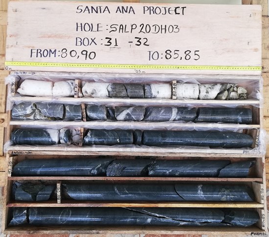 Photo 2 – SALP19DH03 La Porfia Vein (0.5 m @ 5,976 g Eq Ag/t or 68.1 g Eq Au/t.)