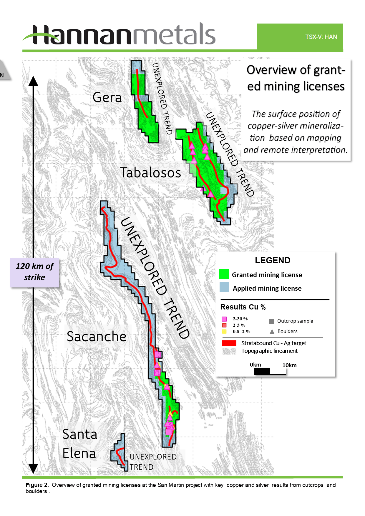 VANCOUVER, BC / ACCESSWIRE / July 21, 2020 / Hannan Metals Limited (“Hannan” or the “Company”) (TSXV:HAN)(OTCPK:HANNF) provides an update on the status of further granted mining concessions at the 100% owned San Martin sediment hosted copper-silver project in Peru (Figure 1).