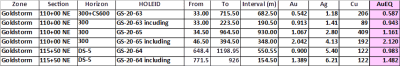 Table l Gold equivalent composite values from Section 110+00 & 115+50 NE of the Goldstorm Zone.