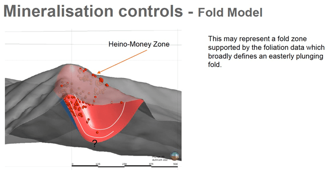 The age, interrelationship and timing between the two styles is still poorly understood with some interpretations considering the highgrade Heino-Money Zone a remobilization and enrichment of the East Ridge Zone mineralization style.