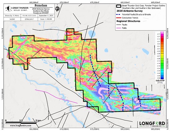 Vancouver, British Columbia–(Newsfile Corp. – September 29, 2020) – Great Thunder Gold Corp. (CSE: GTG) (OTC: GTGFF) (FSE: M4KQ) (“Great Thunder” or the “Company“) is pleased to report the interpretation results of the airborne survey data on its Northbound, Northbound Extension (now combined to be referred as the “Northbound Project”) & the Southern Star Project in the Fenelon Gold Camp of Quebec, Canada.