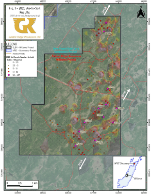 Golden Ridge Announces Results of Phase I Soil Sampling and Prospecting Program at the Williams Project; Identifies New 2.4 Kilometre Gold-In-Soil Anomaly