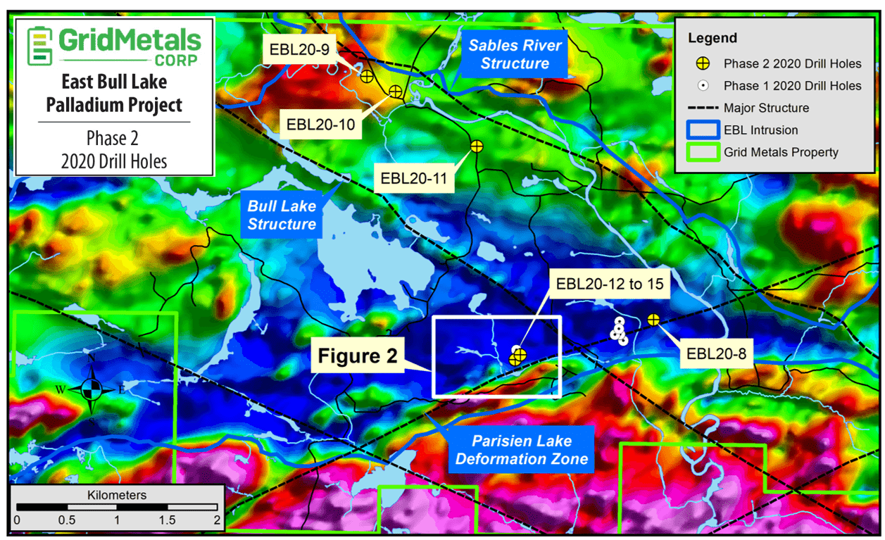 TORONTO, ON / ACCESSWIRE / November 24, 2020 / Grid Metals Corp. (the “Company“) (TSXV:GRDM) today provided an update regarding its 2020 exploration program at its 100% owned East Bull Lake (“EBL”) palladium property (the “Property”) in Ontario. The Company is exploring for palladium mineralization on the >20 km long EBL Intrusion with a specific focus on potential feeder structures and other structural trap sites for palladium-rich sulfides. The Property covers approximately 85% of the intrusion and is located approximately 80 km west of Sudbury, Ontario.