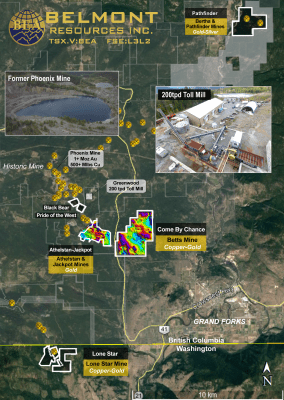 Belmont Resources is engaged in the business of acquiring past producing gold-copper mines located in the highly prospective Greenwood-Republic mining camps. By utilizing new exploration technology and geological modelling the company is identifying possible sources of gold-copper mineralization beneath the relatively shallow past producing mines.