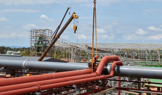 Ongoing installation of piping at Kakula’s first 3.8-Mtpa concentrator plant.