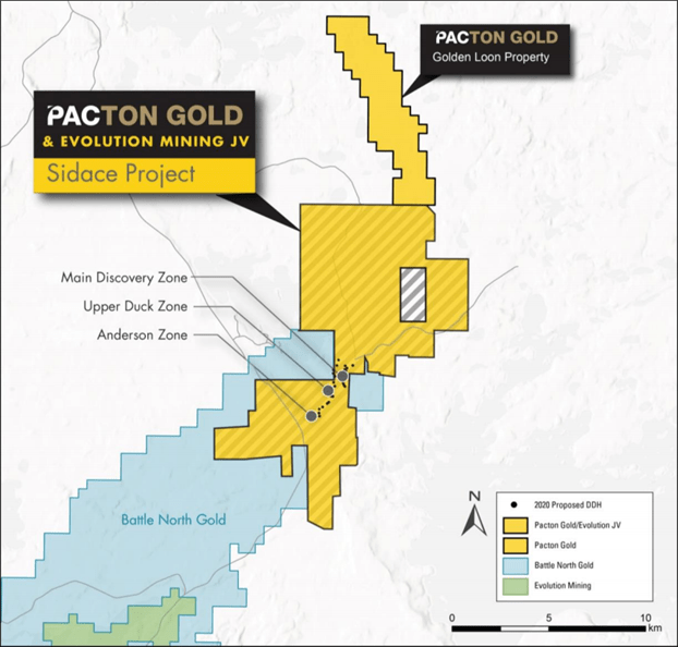 - Acquisition of joint venture interest in the advanced Sidace gold project in Red Lake. Pacton entered into a joint venture with Evolution Mining, the senior producer in the district (see Pacton news release dated April 2, 2020).