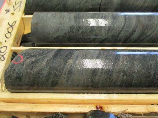 Hole DL20-004 returned the deepest intercept to date at the past producing Dona Lake Gold mine based on currently available data. This hole penetrated the Main Zone at approximately 573m below surface and returned a core length intercept of 5.31 grams per tonne (g/t) gold (Au) over 6.65 meters (m) (607.25-613.9). This was a part of a broader zone of mineralization of 3.64 g/t Au over 11.75 m (607.25-619.0m) (See Table Below). Mineralization is hosted within silicate-sulfide iron formation and characterized by stringer to disseminated pyrrhotite ranging from 3 to 20% with local pyrite and as well as sections of silicate-oxide iron formation. Alteration includes strong silicification with local quartz veining and locally moderate to strong grunerite, hornblende and biotite in conjunction with local folding.
