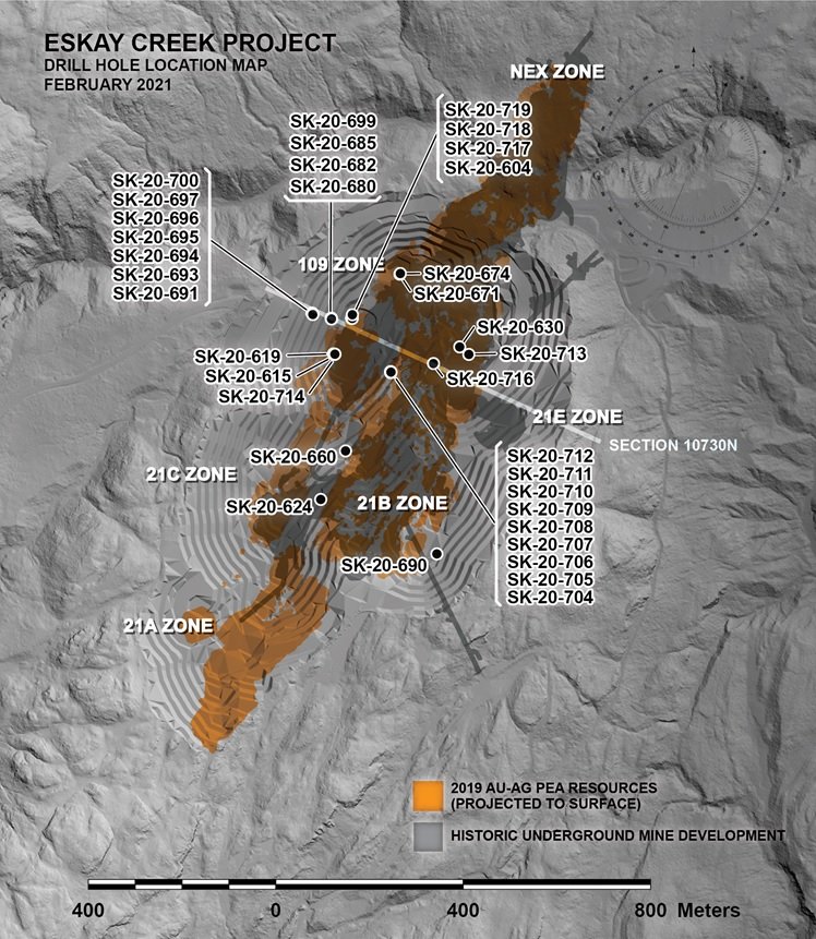 VANCOUVER, BC / ACCESSWIRE / February 10, 2021 / Skeena Resources Limited (TSX:SKE)(OTCQX:SKREF) (“Skeena” or the “Company”) is pleased to report additional diamond drill core results from the Phase 2 campaign of definition and exploration drilling at the Eskay Creek Project (“Eskay Creek” or the “Project”) located in the Golden Triangle of British Columbia. The Phase 2 infill program, focused upon resource category conversions for the Pre-Feasibility Study (“PFS”) on open-pit constrained resources, is now complete. The Company has also recently completed a 5,000 m near-mine exploration program at Eskay Creek and is awaiting results. Reference images are presented at the end of this release as well as on the Company’s website.