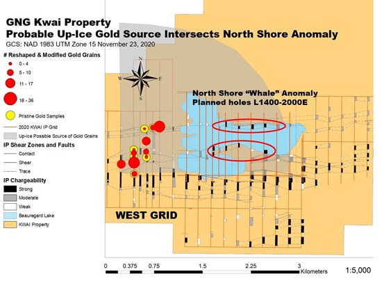 Company CEO Paul Sorbara, PGeo, comments: “We are very pleased with this new development. It seems to me that we have encountered a whole new mineralizing system. It is not the model we are pursuing, and we continue to search for high-grade gold. However, it is what it is and it shows that mineralizing systems were at work here and it is up ice from the gold grains in till found on the West Grid.”