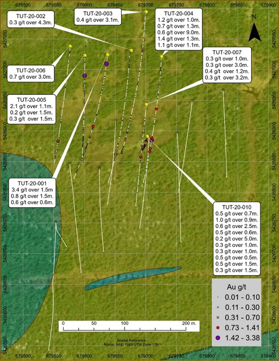 Note: Results from holes TUT-20-008 and TUT-20-009 are still pending.