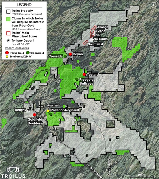 - Enhances Troilus’ exploration and growth profile with the addition of UrbanGold’s underexplored asset portfolio, including the BullsEye project;