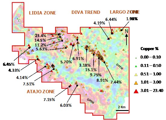 Figure 1. Lidia Zone – High Grade Copper & Gold
