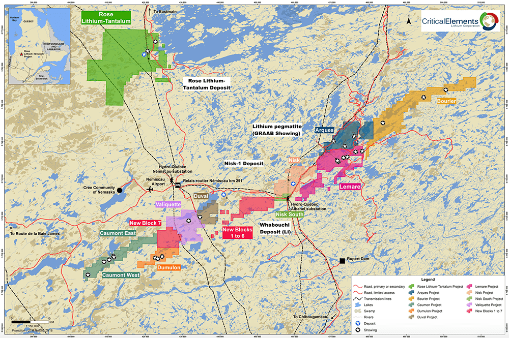 The Bourier property is adjacent and North-East to the Lemare Lithium property, wholly owned by Critical Elements.