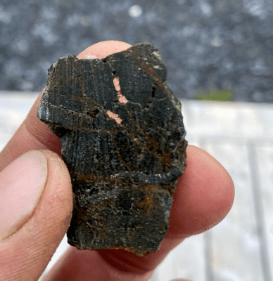 Recently the exploration team visited the Property for site evaluation and examined an outcrop of ‘A’ Zone mineralization, located along Copper Mine Brook. Eleven grab samples and 3 continuous chip samples in 1 m intervals were collected along a 100m strike. These samples have since been sent to Eastern Analytics in Springdale, NL for ore grade assays. (Photos of this sampling work shown below).