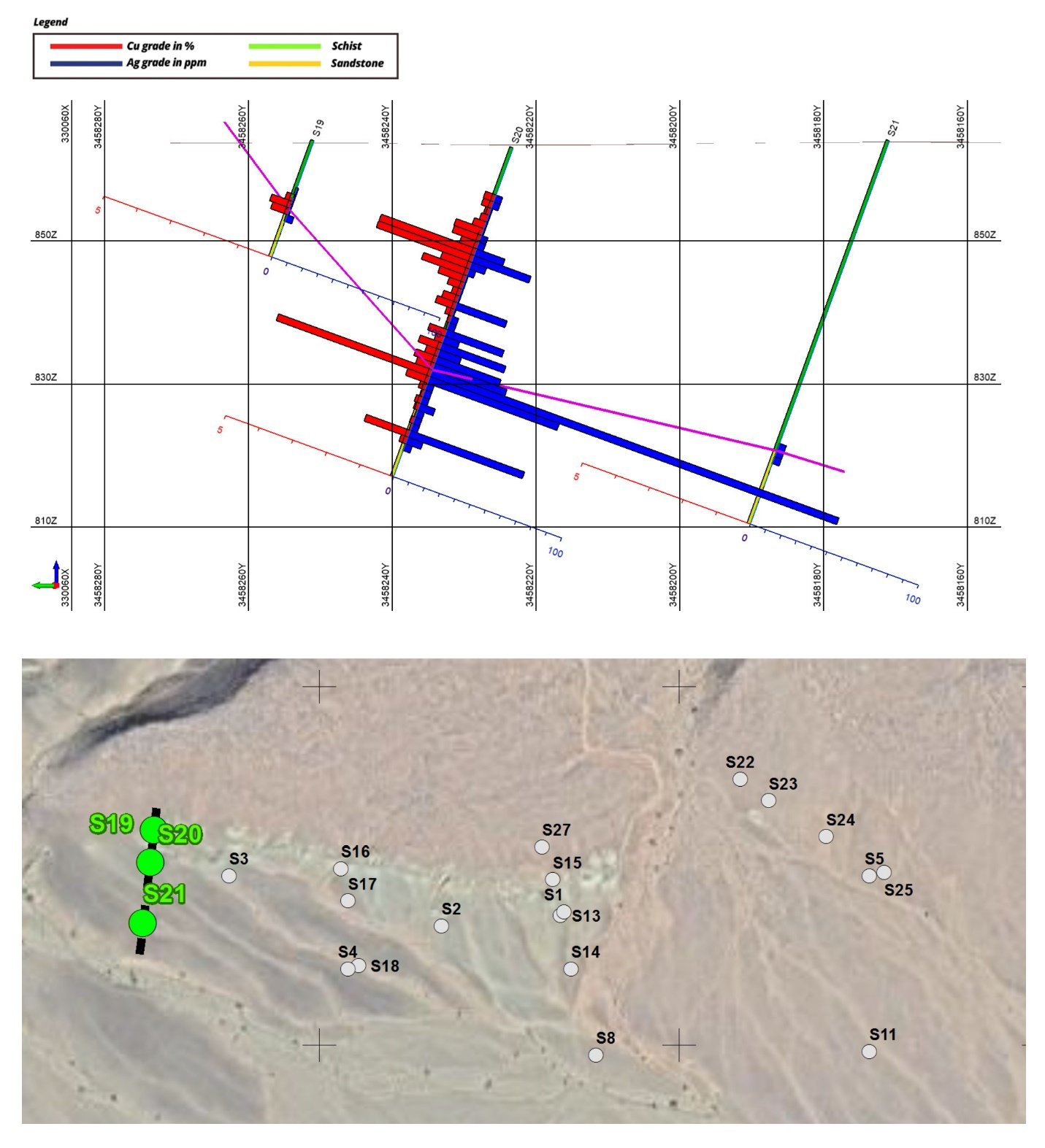 - Hole S20: 31 metre @ 0.74% copper and 23 g/t silver including: