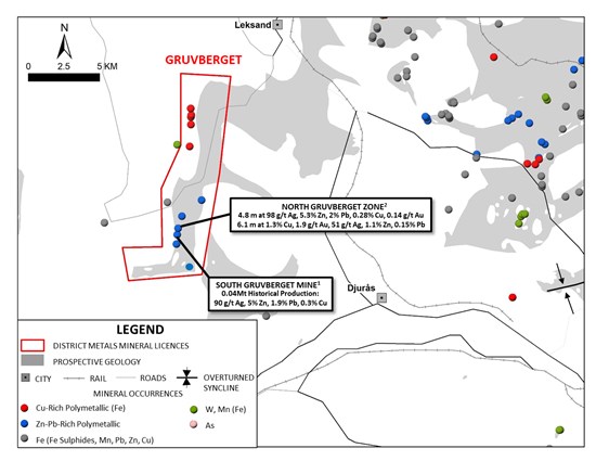 - Gruvberget is located 35 km to the northwest from District’s Tomtebo Property, and contains similar host rocks, structure, alteration, and mineralization styles as the Garpenberg Mine, Historic Falun Mine, and the Tomtebo Property.