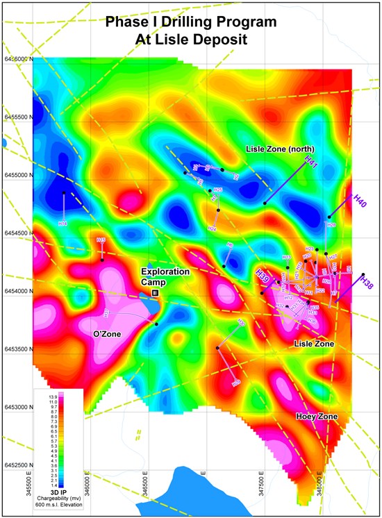 Site preparation will concentrate on the Lisle Zone North of the Hat deposit, as well as the eastern and southern areas of the deposit. The locations shown in the illustration below will be the anticipated phase I drilling sites that are subject to minor changes as per the onsite geologist’s review.