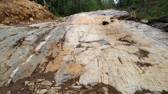 The initial focus of the surface program is the Allied Syenite where significant drill results have been obtained in drill holes MG20-47 (1.17 g/t Au over 107.3m), MG20-49 (1.43 g/t Au over 118.5m) and MG21-56 (6.6 g/t Au over 117m) in the recent Phase I and IIA exploration programs conducted in 2020 and 2021. The objective is to further define all structures, veins and other surface mineralized features and collect representative samples of these potential zones both within and adjacent to the Allied Syenite (Photos 1 to 4). Results will provide the Company an enhanced three-dimensional understanding of the near surface extent and controls of bulk-tonnage and high-grade gold-telluride mineralization in the Allied Syenite Gold Zone.