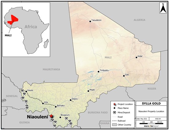 Bedford, Nova Scotia–(Newsfile Corp. – August 30, 2021) – Sylla Gold Corp. (TSXV: SYG.H) (Sylla Gold or the “Company“) is pleased to announce that it has entered into a non-arms length, non-binding letter of intent (“LOI”) with Niaouleni Gold Inc. pursuant to which Sylla Gold would acquire an option to earn 100% of the Niaouleni Gold Project (“Niaouleni” or the “Project“) located in the prolific gold-bearing Birimian rocks of southern Mali in West Africa. The Project is located approximately 150 km southwest of the capital city of Bamako, and adjacent to African Gold Group’s Kobada gold deposit. The Kobada Gold Project contains a Measured and Indicated mineral resource of 46.7 Mt grading 0.86 g/t Au for 1.19 Moz of gold, and an Inferred mineral resource of 31.5 Mt grading 1.33 g/t Au for 1.14 Moz of gold (source: NI 43-101 Technical Report for the Kobada Gold Project in Mali with an effective date of June 17, 2020 and filed on SEDAR under African Gold Group Inc.). Readers are cautioned that mineralization and mineral resource estimates on adjacent properties are not necessarily indicative of mineralization on the Project (please refer to additional cautionary statements below).