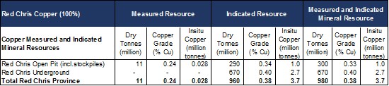 - Confirms Red Chris potential to become a world class, long life mine