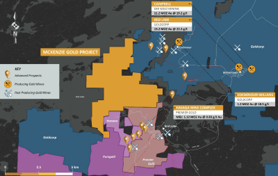 Results from the Company’s initial summer 2020 drill program returned values similar to historic drilling in the area, which have been typically higher-grade intercepts over narrow widths (i.e., 0.5m to 1m of > 5 g/t Au). In addition, a second style of gold mineralization was discovered on the McKenzie property. These lengthy (> 100m) disseminated, sub and near one-gram gold intercepts more closely resemble the type of mineralization being explored by Premier Gold at the Hasaga Project, located approximately 5kms east of the McKenzie project ground.