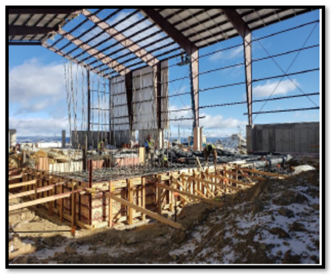 Flotation building civil work is well underway, and an additional steel erection crew, and two additional cranes have mobilized to site to complete erection.