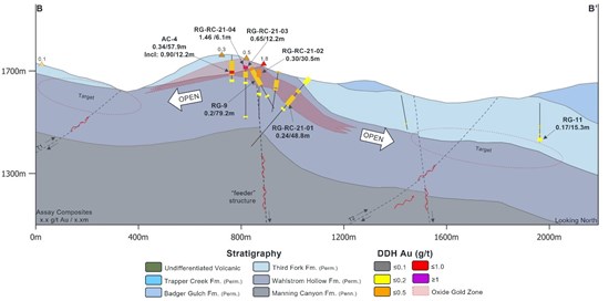 - RG-RC-21-04: 6.1m grading 1.46 g/t Au (Hole drilled to 6.1m – cased and ready for re-entry)