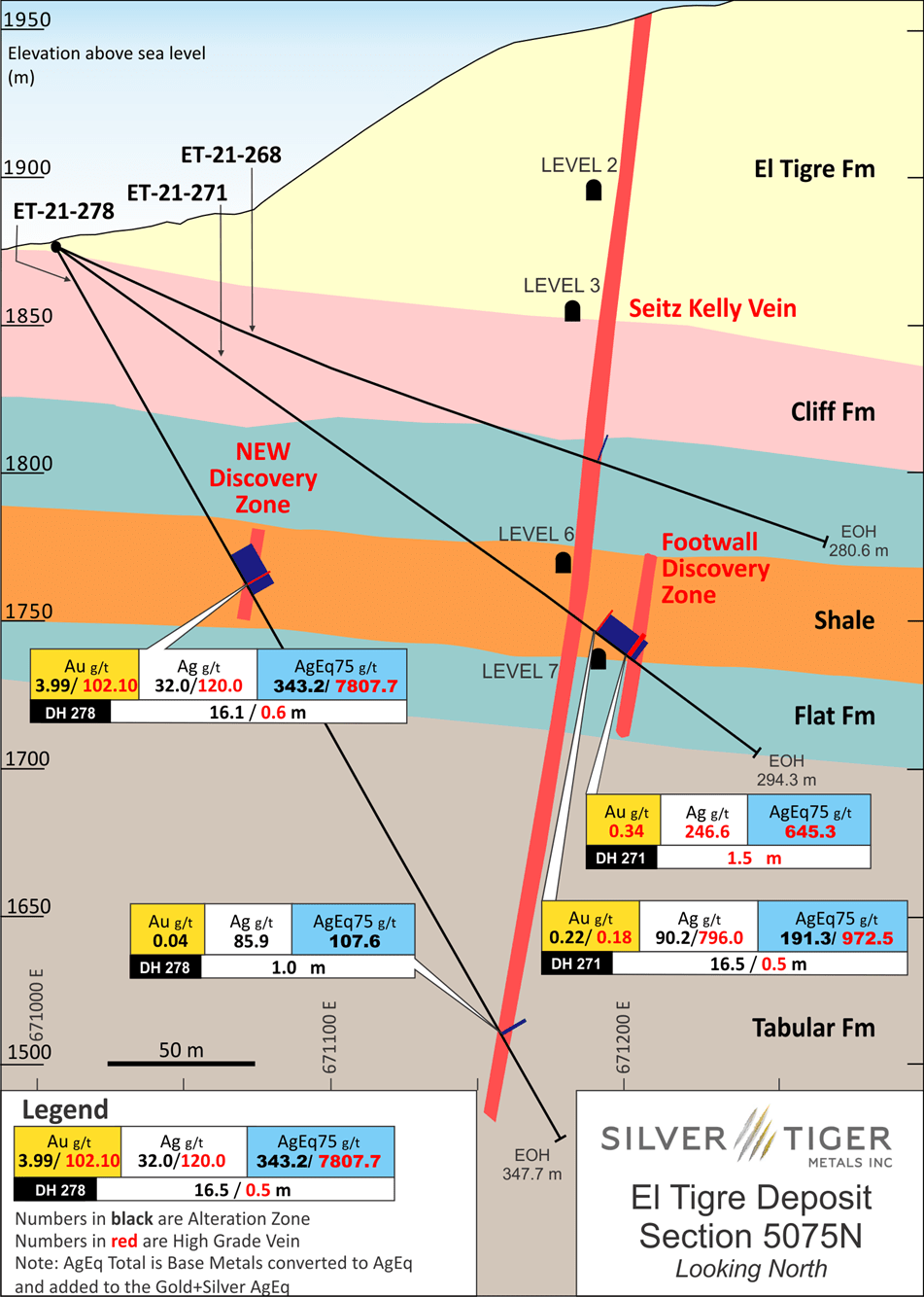 Attached is Cross Section 5075N which includes Drill Hole ET-21-278 and the new discovery. A Plan Map of the SeitzKelly, Tiger and Sooy Veins with the New Discovery Zone is attached.