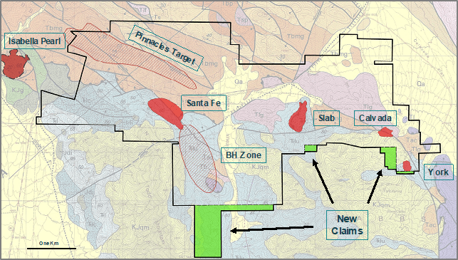 Kimberly Ann, President & CEO commented: “The Walker Lane of Nevada is an incredibly competitive mining and exploration jurisdiction, and Lahontan wants to be very proactive when the opportunity to acquire new claims is available. A portion of our new claims cover geologic structures which extend southerly from the Santa Fe open pit and the BH Zone. The structures influence the distribution of hydrothermal alteration in outcrop and represent future exploration targets. Our team is gearing up for the resumption of drilling at Santa Fe and it’s important to complete these tasks before drilling commences”.