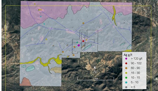 Santa Cruz lies at the intersection of the Santa Cruz fault with the Las Auras fault and is currently the principal known mineralized area. The area is partially covered by small third-party internal concessions where numerous small pits, mines and trenches are present. Highlighted samples taken by the Company in this area range from 0.15 to as much as 28 g/t gold, generally with low silver values, but with one sample yielding 398 g/t silver for a 1-meter sample. Historic sampling yielded as much as +10g/t Au and 59.8 g/t Ag from a dump sample, and a sample from the Hedionda mine taken for the Los Pavitos Technical Report (see news release or March 19, 2021) yielded 8.3 g/t Au and 62 g/t Ag for a 0.25 m channel sample.