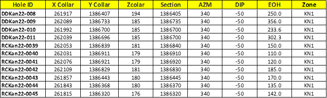 Table 2: Drillhole ID of Kandiole North (Q1 2022)