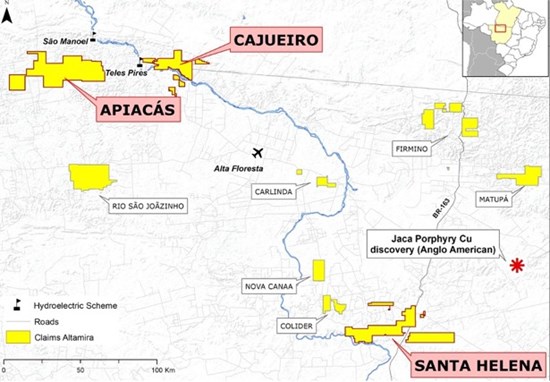 Figure 1: Location of the Santa Helena, Apiacas and Cajueiro projects.