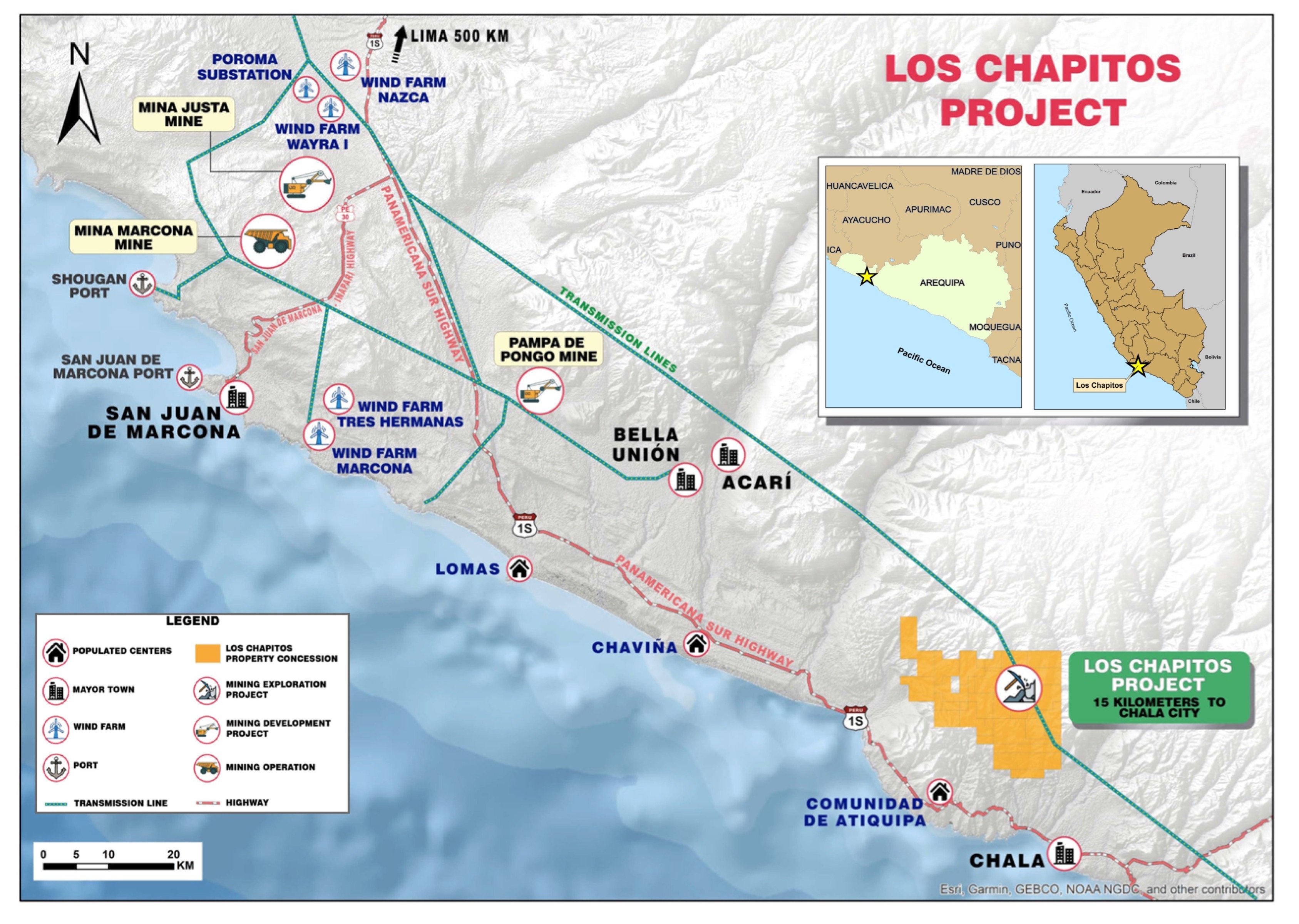 Figure 3. Location Map of the Los Chapitos Copper Project Along the Coastline of Peru