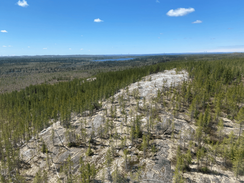 The spatial distribution of the very anomalous pegmatites, clustering in the center of the property, within the volcano-sedimentary country rock is thought to be a positive exploration attribute, given the deposit model within the James Bay Lithium District.