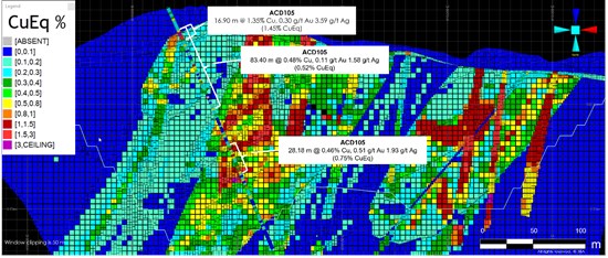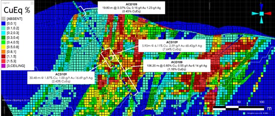 Hole ACD109 Reports 30.48 Metres of 2.43% Copper Equivalent1 (1.87% Copper, 1.00 g/t Gold and 16.69 g/t Silver)