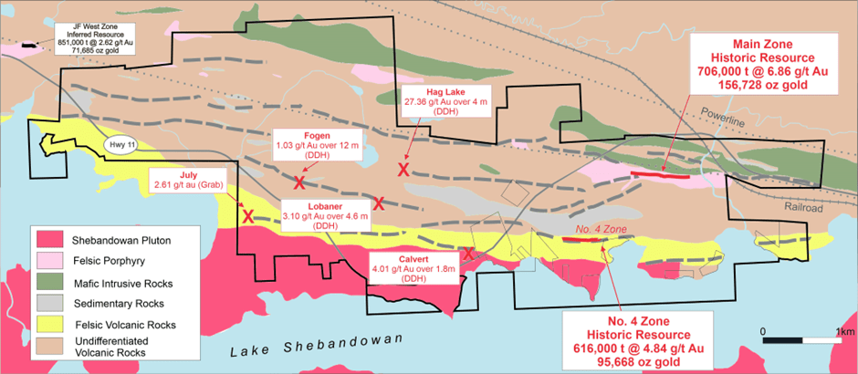 The Band-Ore project is located in the Shebandowan Greenstone Belt, which hosts a number of historical gold deposits and occurrences, including the nearby Moss Lake Gold deposit (4.0 Moz gold M&I). This greenstone belt is thought to be part of a regional east-west trend of gold-bearing belts which also host the Timmins and Hemlo gold camps, both world-class mining jurisdictions.