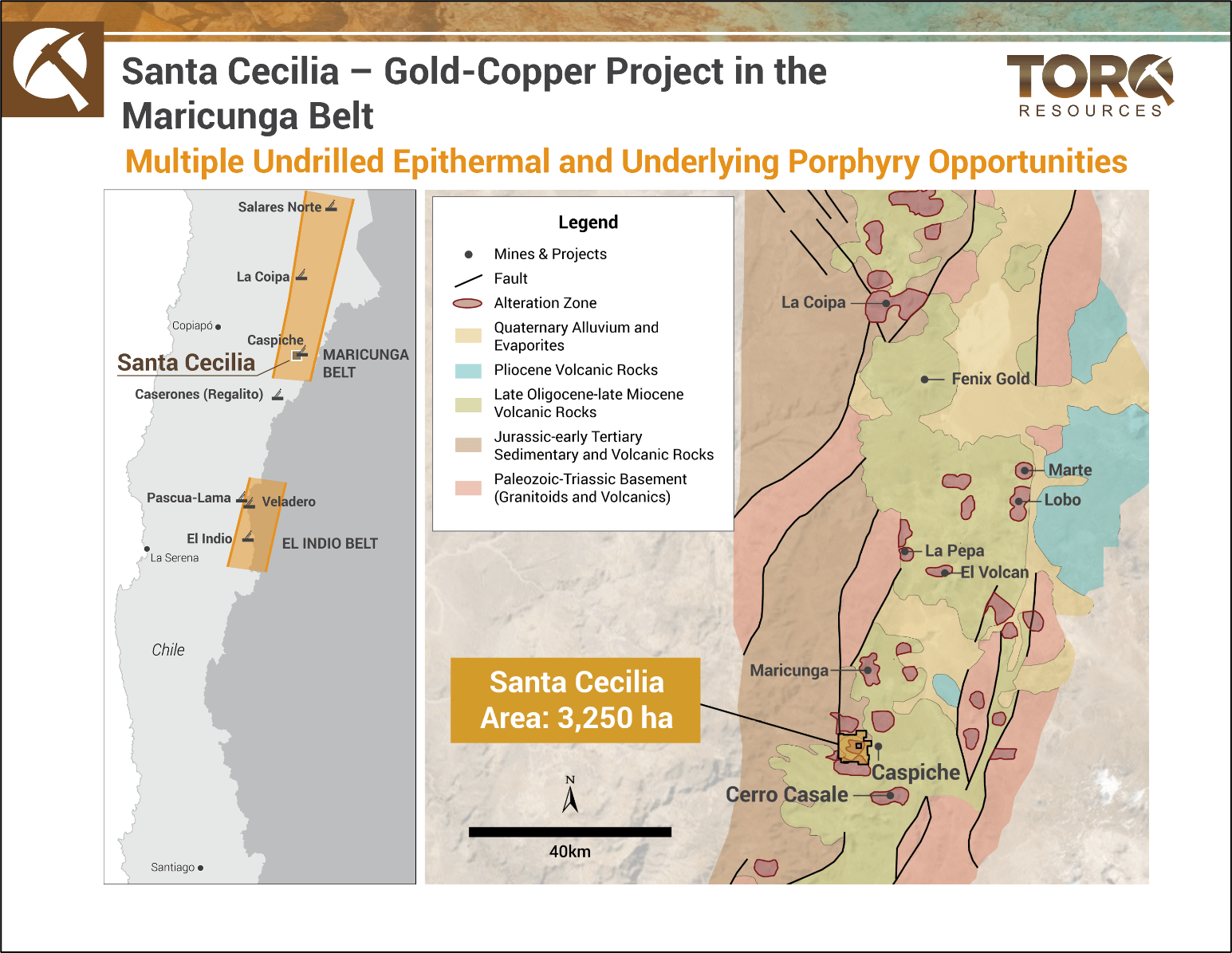 VANCOUVER, BC / ACCESSWIRE / December 13, 2022 / Torq Resources Inc. (TSX-V:TORQ)(OTCQX:TRBMF) (“Torq” or the “Company”) is pleased to announce that it has initiated surface exploration at its Santa Cecilia gold – copper project located in the world-class Maricunga belt in northern Chile, approximately 100 kilometres (km) east of the city of Copiapo (Figure 1). The surface exploration program is focused on defining drill targets with the aim of initiating the first drill program at Santa Cecilia in Q1 2023.