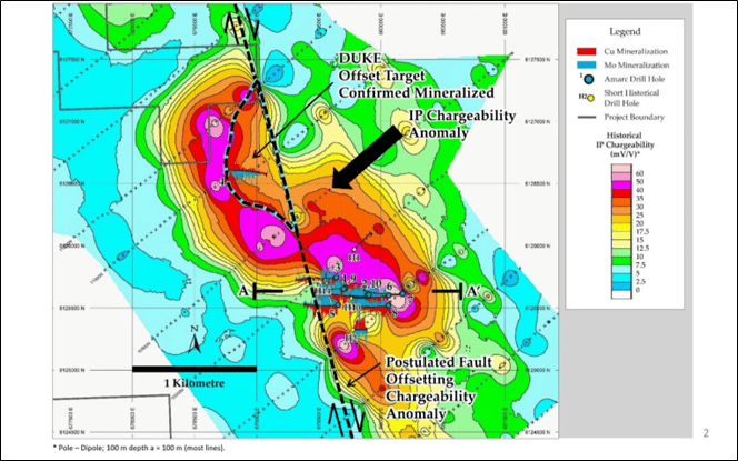 Figure 2: DUKE Deposit – IP Chargeability Anomaly Indicates a Significant Mineralized System