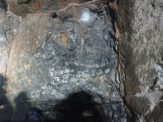 Development drift intersecting a wall of sulphides at the Buckeye Mine, Jan. 28, 2023