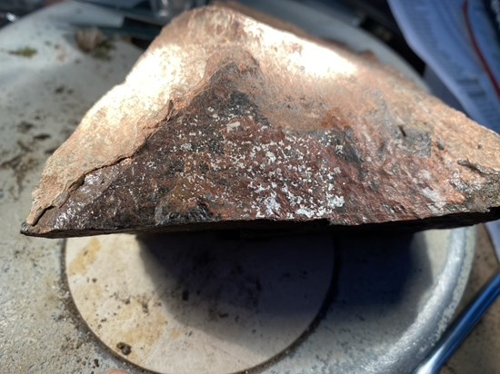 The first sample being analyzed by Dr. McDonald was taken by the QP in November, 2022. It was diabase from the floor of the Treasure Room of the Buckeye Mine containing a silvery ductile mineral, subsequently confirmed by Dr. McDonald to be high purity native silver. When this sample was examined with an uncalibrated handheld X-ray fluorescent unit, the presence of palladium at 29 and 21 parts per million was noted. The second sample provided to Dr. McDonald was a malformed dore bar poured by SBMI in September, 2022 derived from the Buckeye Mine, containing highly refractory “unknown material.”