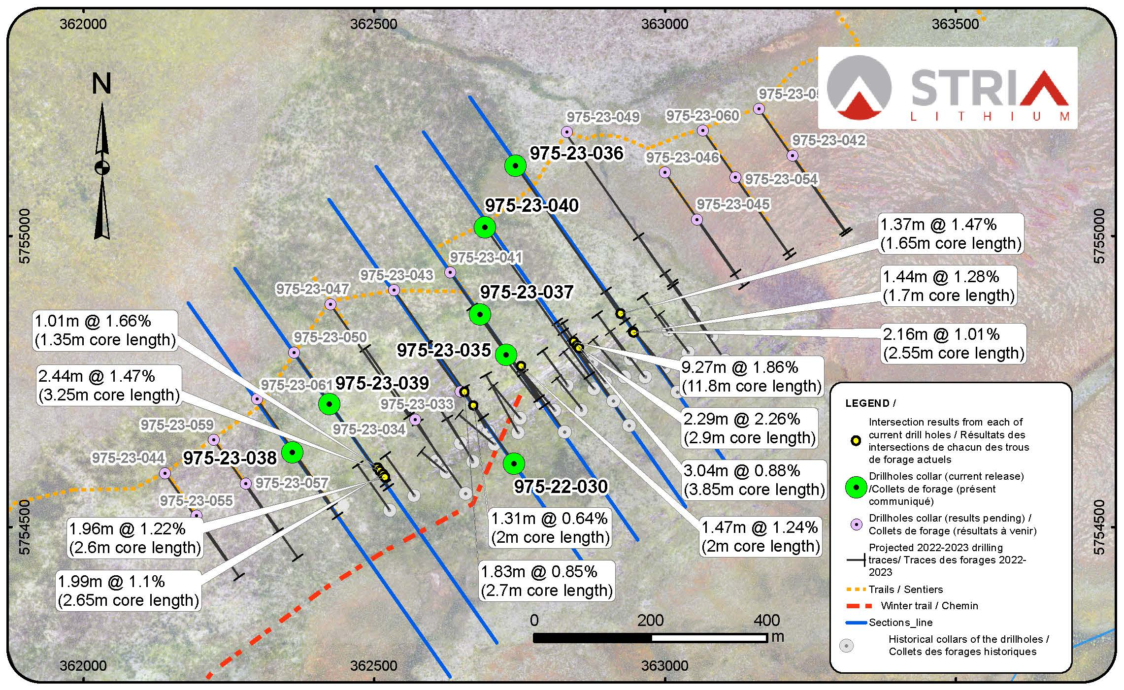 Ottawa, ON – TheNewswire – April 24, 2023 – Stria Lithium Inc., (TSXV:SRA), (OTC:SRCAF), an emerging resource exploration company developing Canadian lithium reserves to meet legislated demand for electric vehicles and their rechargeable lithium-ion batteries, is pleased to announce the best result to date from the winter drilling program at its the Pontax Lithium Project in the Eeyou Istchee James Bay Territory of Québec, Canada.