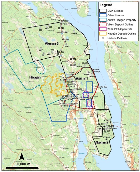 - Historical drill holes completed within the area of the Viken nr 2 and 3 mineral license applications returned grades and widths of mineralization that are consistent with drill results from within the Viken Deposit (Tables 1 to 3).