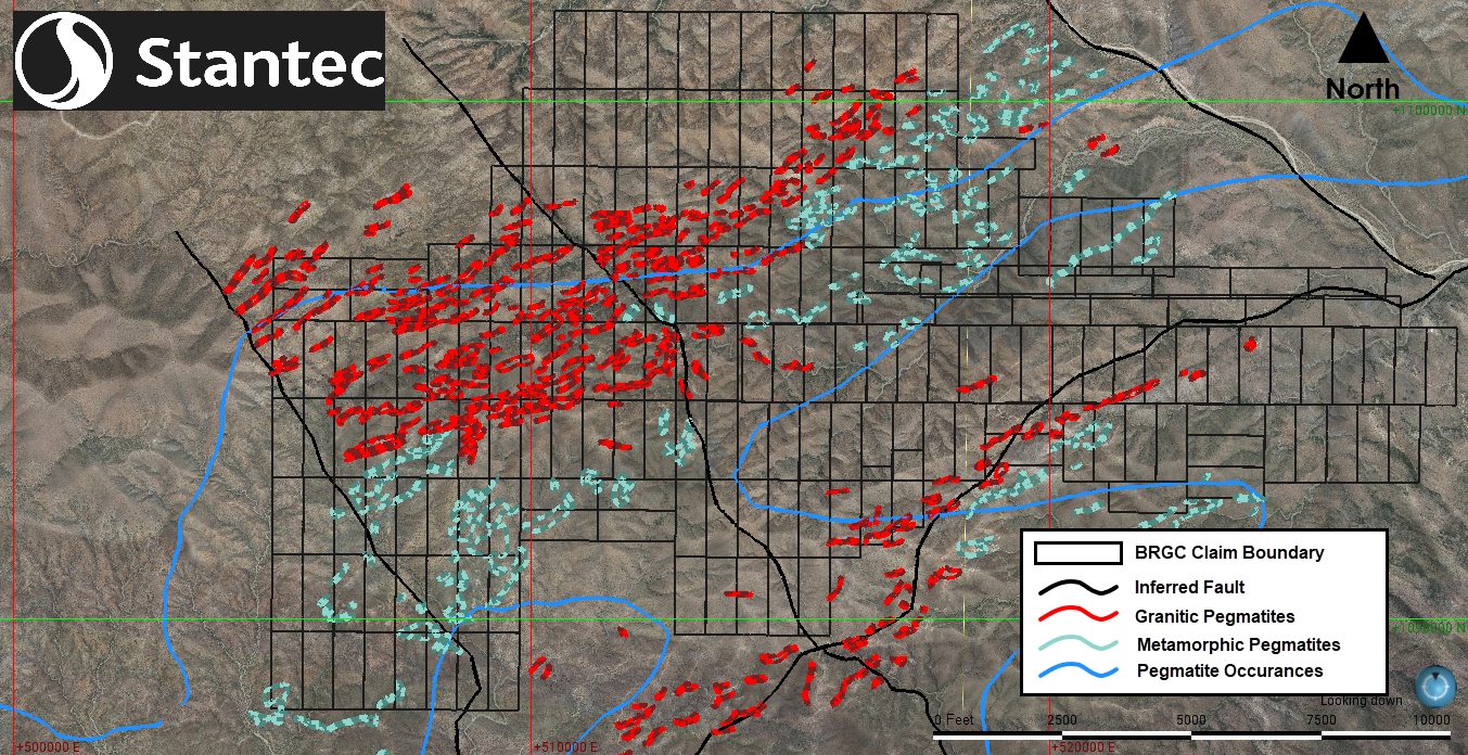 Figure 3 shows the distribution of pegmatite dikes within the White Picacho Pegmatite District as interpreted by Stantec from aerial imagery. The results of the hyperspectral analysis and initial geologic interpretation will guide the development of an extensive targeted outcrop sampling program and follow-up exploration work.