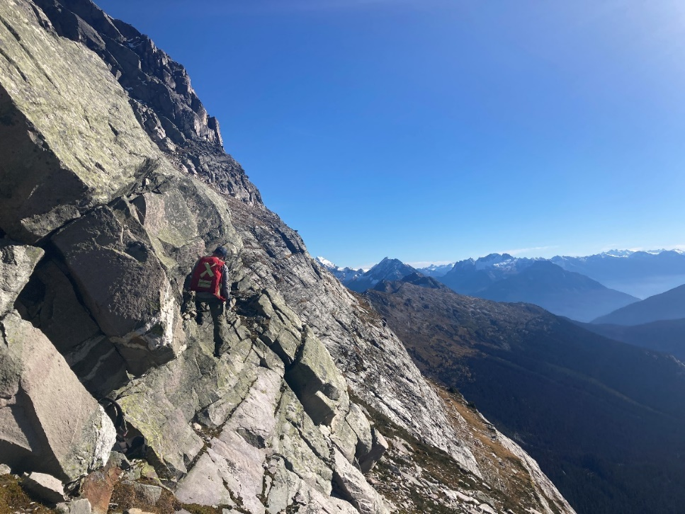 Photo: Geologist investigating quartz veins on McGillivray Ridge