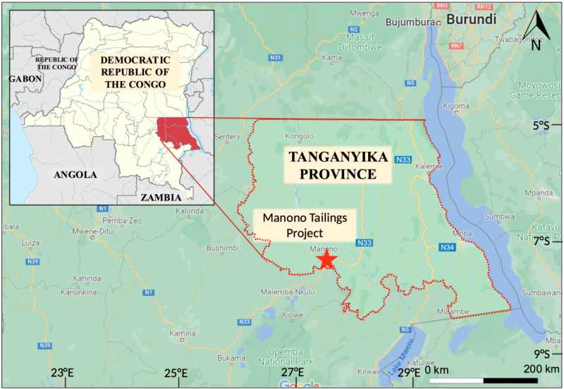 Tantalex Lithium Resources Corporation (Tantalex) is a Canadian exploration company listed on the Canadian Securities Exchange, the Frankfurt Stock Exchange and the United States OTCQB Venture Market. Tantalex Lithium Resources owns 52% of the Manono lithium-tin-tantalum tailings deposit, located 490 km north of Lubumbashi, in the Tanganyika Province of the Democratic Republic of Congo (DRC) (see Figure 1).