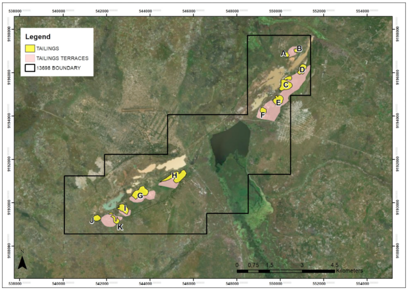 The nine tailings deposits have been evaluated by air core drilling, completed from September 2021 to July 2022. A total of 368 drillholes, amounting to 11,922.4 meters of drilling, have been completed, which took place over two phases.