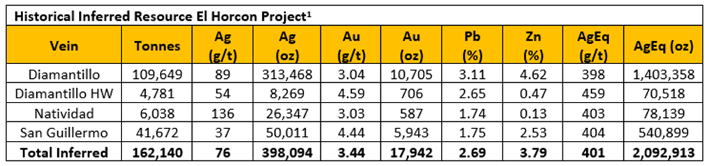 The El Horcon mineral resource estimate is a historical estimate and the reader is cautioned not to treat them, or any part of them, as a current resource. A qualified person has not done sufficient work to classify the historical estimate as current mineral resources or mineral reserves and the Company is not treating the historical estimate as current mineral resources or mineral reserves. The mineral resource is taken from a Great Panther technical report dated February 20, 2017. However, based on the assumptions, parameters and methods in the prior technical report, as well as literature and data review the Company considers such estimate to be relevant and reliable and provides an indication of the extent of mineralization identified by previous operators at the El Horcon Mine. To verify the historical mineral resource estimate as a current mineral resource, a qualified person would need to complete database validation, undertake a full review of estimation parameters and procedures, and complete an updated mineral resource estimate and a NI 43-101 technical report incorporating additional production, drilling, sampling and resaying of core completed at El Horcon since February 2017.