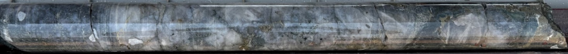 Figure 1: Drill core from hole CADH006, massive orogenic quartz vein with pyrite-pyrrhotite-marcasite-sphalerite-galena mineralization from 186.93 – 187.58 metres.